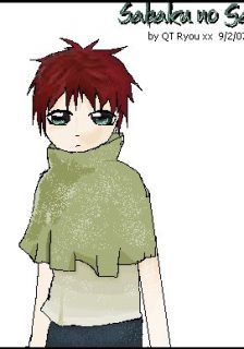 Ok, here is my most recent little gaara fanart drawn on MS Paint. It’s better than my other one, but I still don’t like it. My name is QT Ryou xx on another site, and so this fanart is mine ^^